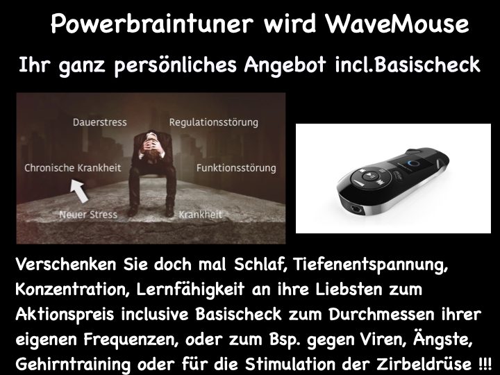 Die absolute Weltneuheit, Ultraschall-Technik durch Binaural-Beats und Frequenzen wurden nach neuesten Forschungs-Ergebnissen zusammen gebracht und in eine neue Dimension befördert. Die Wirkung ist sensationell. Sie wurden neurologisch getestet und eindeutig nachgewiesen. Sehr schnell kann man hiermit zielgerichtet den gewünschten Zustand im Gehirn erreichen.